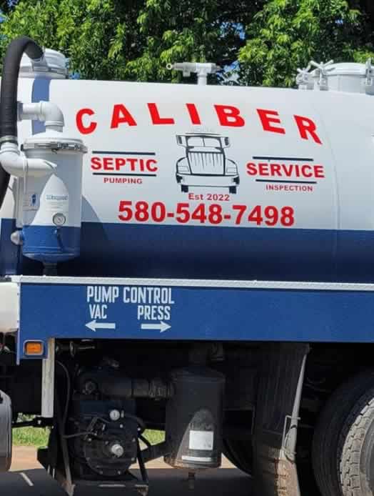 Caliber Septic Service is a family owned & operated business that is licensed and bonded and specializes in the environmentally friendly disposal of sewage, septic, and non-hazardous wastewater. We also offer septic tank pumping, grease trap pumping, Aerobic system service and pumping, maintenance plans, repairs and installation of any and all types of new septic systems, camera line inspection, hydro jetting service, riser installation, light excavation and brush clearing. We are based out of Garber, OK and serve Garfield County and the surrounding counties including: Kay, Payne, Noble, Major, Logan, Kingfisher, Grant, Blaine, and Alfalfa County.